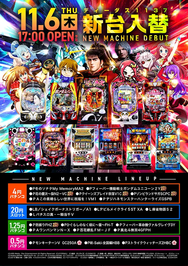 ダスラー特設 | 石川エリアのパチンコ・パチスロ最新機種・取材 2025.11.04 北陸 石川県 ダスラー ダスラーグループ 全店5日一斉開店 北陸 石川県 ダスラー ダスラーグループ 全店15日一斉開店 北陸 石川県 ダスラー ダスラーグループ 全店25日一斉開店 ダスラー新台入替情報開店時間や閉店時間が変更になる日程がございますのでご注意ください。 ダスラー津幡 デルダスラー ディーダス1137 取材情報 ダスラー津幡 デルダスラー ディーダス1137 各店舗のご案内 ディーダス1137 P-WORLD ブログ Twitter LINE 津幡ダスラー P-WORLD ブログ Twitter LINE デルダスラー P-WORLD ブログ Twitter LINE