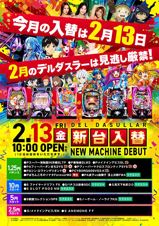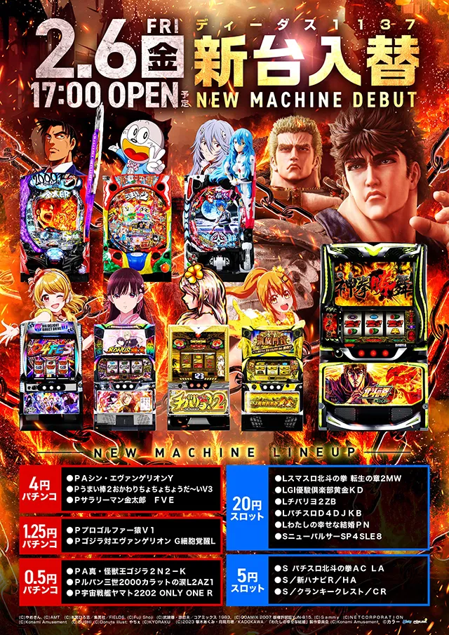 ダスラー特設 | 石川エリアのパチンコ・パチスロ最新機種・取材 2026.02.01 北陸 石川県 ダスラー ダスラーグループ 全店5日一斉開店 北陸 石川県 ダスラー ダスラーグループ 全店15日一斉開店 北陸 石川県 ダスラー ダスラーグループ 全店25日一斉開店 ダスラー新台入替情報開店時間や閉店時間が変更になる日程がございますのでご注意ください。 ダスラー津幡 デルダスラー ディーダス1137 取材情報 ダスラー津幡 デルダスラー ディーダス1137 各店舗のご案内 ディーダス1137 P-WORLD ブログ Twitter LINE 津幡ダスラー P-WORLD ブログ Twitter LINE デルダスラー P-WORLD ブログ Twitter LINE